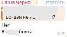 Война Саши Черно с антифанатами продолжается. После разборок насчет паспорта Богдана и публичных обвинений парня в употреблении запрещенных веществ со стороны участницы Дома 2, хейтеры Александры решили докопаться до правды, связались в Телеграме с Богданом и "слили" голосовое сообщение, в котором он говорил "я её не хочу, как женщину, у меня не вста...". Черно опять разбиралась до утра, о чём и о ком идёт речь, написала много голосовых сообщений, оправдывалась перед зрителями Дома 2 в различных группах и опубликовала личную переписку с Салангиным.