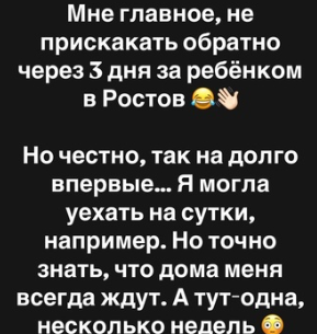 Саша поделилась с подписчицами в своём телеграм-канале откровениями - она даже во время загулов любила приходить домой и там её всегда ждали, а сейчас она не знает, как долго продержится, чтобы не сорваться к своим родным и не навестить свёкров в Кущёвке.