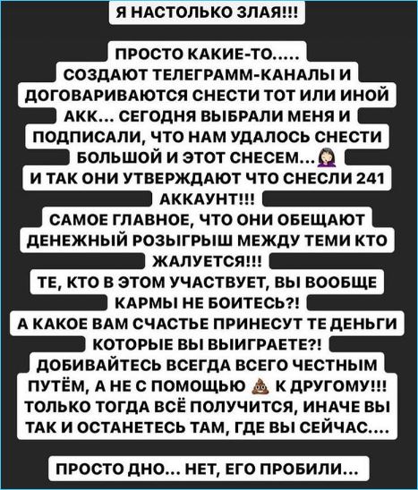 - Во-вторых, некоторые блогеры даже толком не знакомы с правилами того или иного ресурса, на котором публикуют свои материалы. Тем самым лишая себя возможности потом оправдаться и вернуть свой аккаунт. С самой Александрой Черно именно так и произошло.