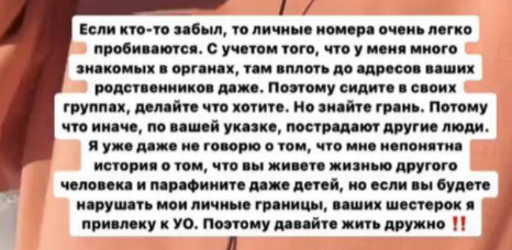 Черно на днях встречалась в ночном клубе со своим другом полицейским и дала понять антифанатам, что среди её знакомых есть люди, которым хейтеры навредили. В частности, пожаловались начальству и по человеку было проведено служебное расследование, когда Саша в сторис похвасталась, что "полицейский для неё украл в баре бокал". об этом мы рассказывали на шлоке здесь.