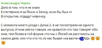 У Александры Устиновой есть шанс на победу, но как она продержится без отношений до конца лета? Вот и Саша Черно инсайдит о том, что приз конкурса достанется новичку, можно ли ей верить?