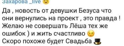 Если верить Яне Захаровой, то Безус планирует сыграть на проекте свадьбу в 2022 году, также в сети появились слухи, что новая пассия Безуса беременна и они планируют растить ребенка в периметре под камерами. Пока же они привезли в периметр несколько чемоданов и собаку.