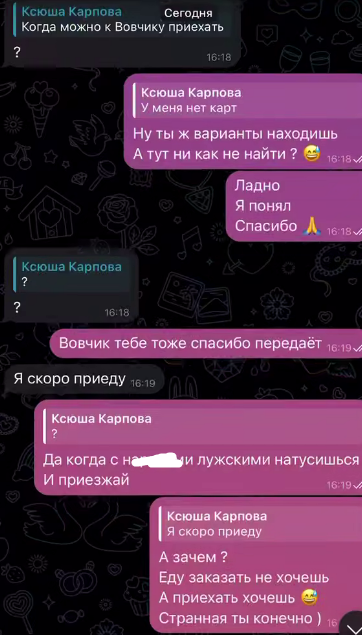 Пока ничего неясно с заявлением в суд, о котором рассказывала Ксения, но с мужем у неё продолжаются споры, похожие на взаимный хайп. Если Карпов получил деньги от бывшей жены, почему не купил еду и сок для ребёнка, а снова начал тянуть деньги, которые Ксюша явно не печатает?