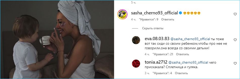 И на Александру Черно моментально обрушилась волна критики, так как Алена может служить для подруги примером материнства, как считают её сторонники.