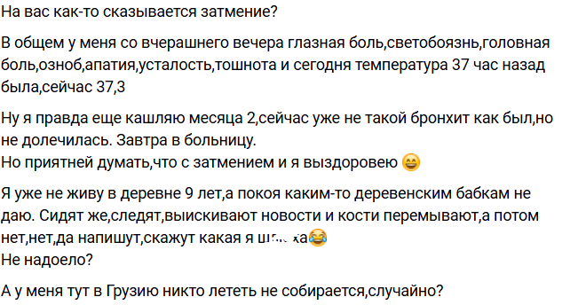 Опенченко рассказала о том, что решает вопросы со своим здоровьем, так как два месяца лечит кашель, а в государственной поликлинике Алёну не принимают, требуют полис и "прикрепиться" к больнице через госуслуги. Доступа к госуслугам у Алёны нет, потому что у неё заблокирована старая сим-карта, которая была оформлена на маму.
