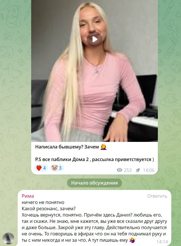 Настя, безусловно, девушка талантливая, и верно пишут её подписчики, что она не успела раскрыться из-за Луковкина, который уговорил её уйти и не бороться за место на брёвнышке. Надавил морально и обманул, а на воле не поддержал, о чем мы рассказывали на шлоке. Как считаете, заинтересует предложение Анастасии новых парней? Артём Гавришов вполне подходящая для хайпа кандидатура, как считаете?