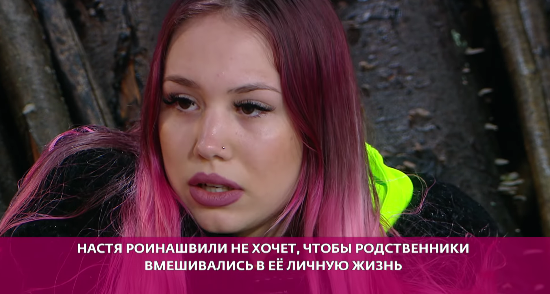 Настя Роинашвили обижена на родню не только из-за своей мамы. Анастасии дедушка и бабушка мешали строить отношения с 30-летним мужчиной, когда ей было 17 лет. Она хотела выйти замуж, родить ребенка, но у мужчины была зависимость, семья разлучила её с возлюбленным, чего девушка до сих пор не может простить родне. На проекте Настя нашла похожего молодого человека, "крутого", по её мнению, и это Глеб Жемчугов. История повторяется и опять у Натальи Роинашвили нет инструмента давления на дочь.