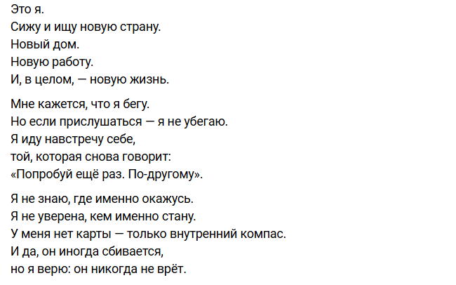 Ромашовой не страшно бродяжничать, проще называть бесконечные переезды - путешествиями и следованием внутреннему компасу. Раньше она говорила, что будет планировать беременность, лечиться и готовиться к рождению ребенка, переедет в Москву, так как там лучшая медицина, но сейчас всё изменилось.