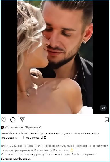 Настя Ромашова в социальных сетях похвастала именным браслетом, который подарил ей муж в честь этого события, ведь мало кто из зрителей Дома 2 верил в чувства этой пары.
