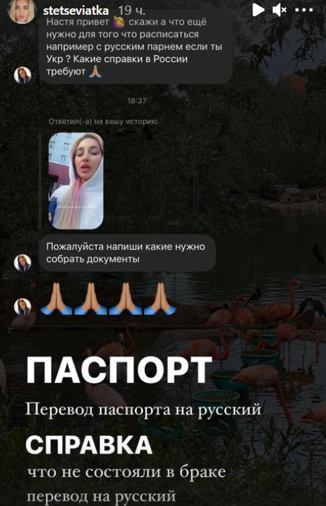 В эту пару не верили поклонники реалити-шоу, как и в объединившихся за периметром Милену Безбородову и Сергея Захарьяша. Но Настя и Максим всё ещё не передумали расписаться, Стецевьят обрадованно сообщила подписчикам, что она собрала последние документы, чтобы подать заявление в ЗАГС.