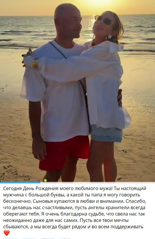 В своём телеграм-канале поздравила Андрея его супруга, отметившая, что он прекрасный муж и отец.