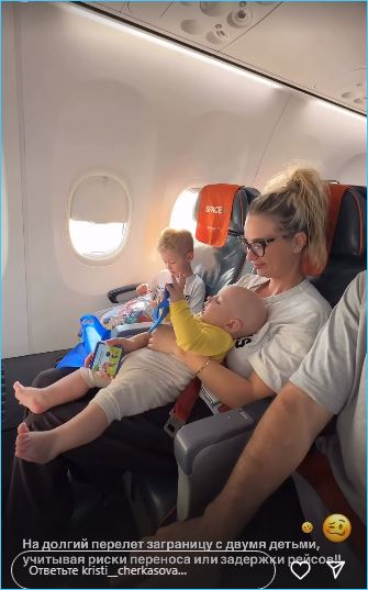 Хотя Кристина Черкасова признается, что она долго сомневалась, стоит ли отправляться в длительный перелет заграницу с двумя детьми, младшему из которых не так давно только исполнилось полгода, вместе родители справились в полете.