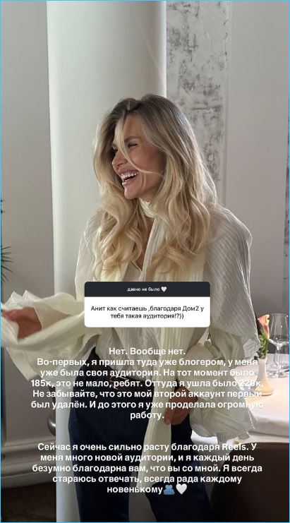 Но и про Дом 2 Анита не забывает, ведь именно на проекте она нашла себе мужа в лице Федора Стрелкова. Больше ей не за что благодарить телестройку, ведь на Дом она пришла, уже имея свою базу подписчиков.