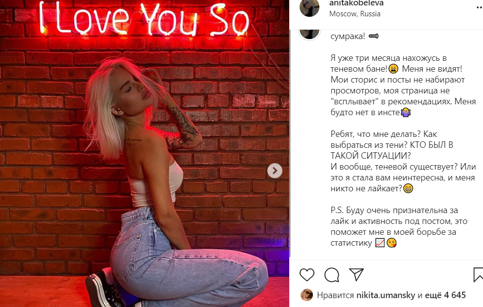 Кобелева не учитывает тот факт, что за свои манипуляции может оказаться в настоящем бане, как Александра Черно, которую постоянно блокируют хейтеры. Всё-таки блогосфера не для Кобелевой, нужно признать, что даже плохонький блогер обязан быть искренним. Что же дальше, начнет шантажировать поклонников тем, что закроет страницу и уйдет в подполье?