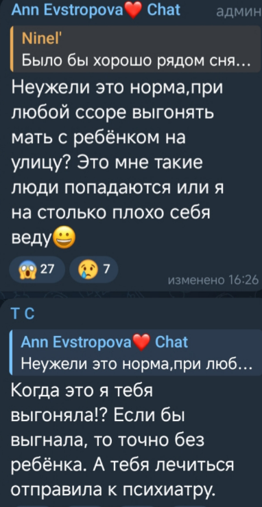 Даже недели не прошло, как Анна Самонина поссорилась с мамой из-за воспитания дочки, экс-звезда Дома 2 накричала на мать и выясняет с ней отношения в своём телеграм-канале. Оказалось, что Аня ночью не просыпается, когда ребенок плачет, спит до обеда, режим ребенка не соблюдает. Татьяна Самонина пыталась как-то привести её в чувства, но начался скандал и чуть не произошла драка.