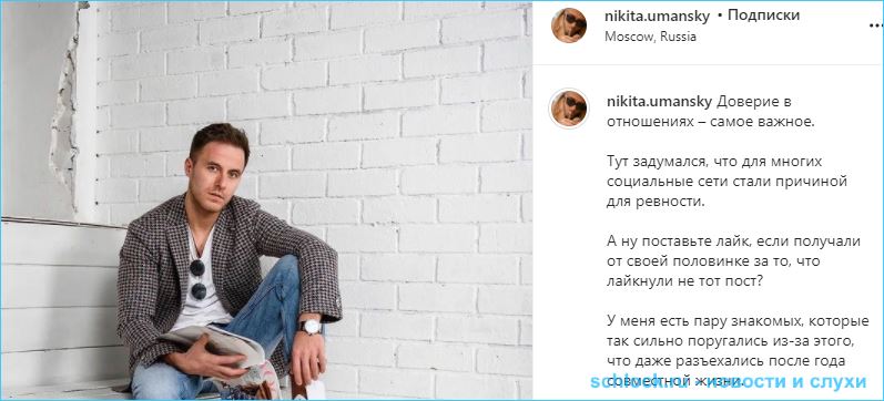 Участник дома 2 опубликовал пост, спрашивая подписчиц, как они относятся к тому, что их парни лайкают чужие фотографии, устраивают проверки, и заигрывают с молодыми людьми с левых аккаунтов. Вопрос верности волнует Никиту, неужеи он опять "накосячил"?.