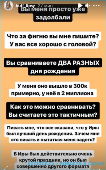 Из-за переживаний, несмотря на хорошее настроение после гулянок, Безбородова потребовала у поклонниц не писать ей про дни рождения и перестать сравнивать.