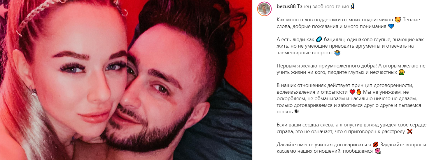Безус пишет в своём микроблоге о то, что подписчикам, которые его поддерживают, он благодарен, а хейтеров просит привести аргументы, в чём именно он деспот и тиран. "Плодите глупых и несчастных", - даёт Безус совет своим недоброжелателям. Сам Безус, видимо, плодит исключительно счастливых людей.
