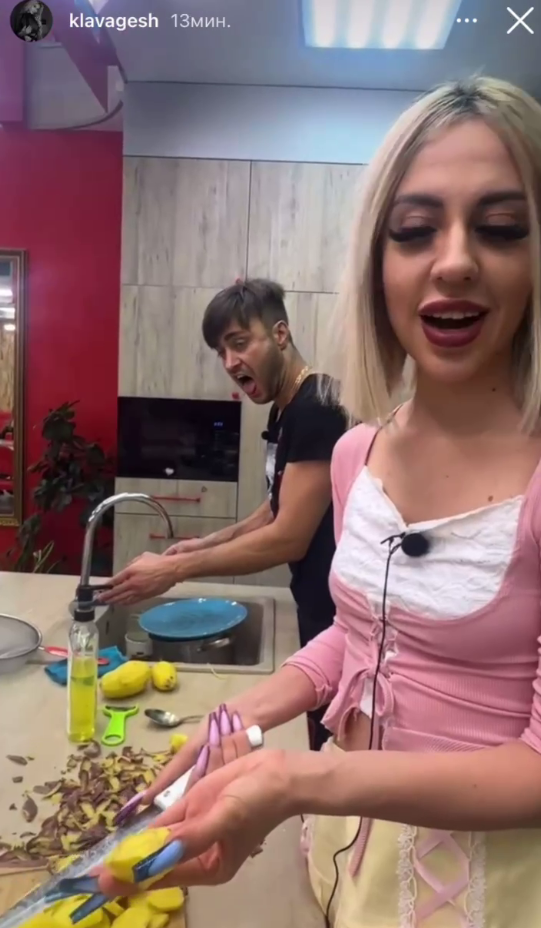Элементарный борщ Кенели с большим трудом приготовила Лёше, чтобы сделать ему приятно, поэтому придётся ей избавиться от любимых ногтей. Как можно увидеть в сторис с Поляны, кончики ногтей Безус уже отпилил.