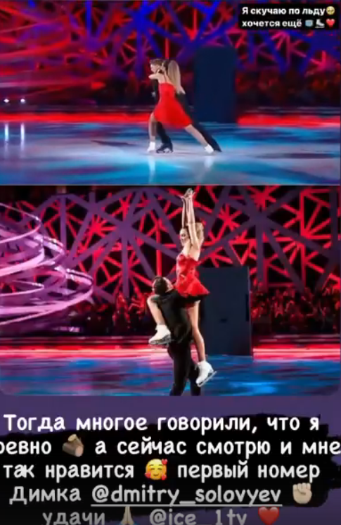 А вот Бузова считает свое первое выступление в ледовом шоу неплохим, хотя антифанаты тоже называли её деревянной и бревном. По всей видимости, Оля сравнила своё и Ксюши выступления и сделала вывод, что сейчас Соловьеву приходится трудно с нерадивой напарницей, раз Оля исключительно Дмитрию желает удачи?