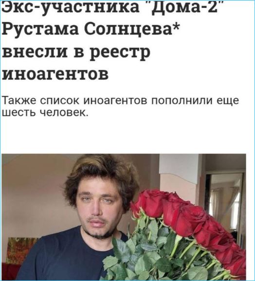 Эпатажный экс-участник Дома 2 Рустам Солнцев все-таки попал в список иноагентов, чего он усиленно добивался своими выступлениями в социальных сетях из США.