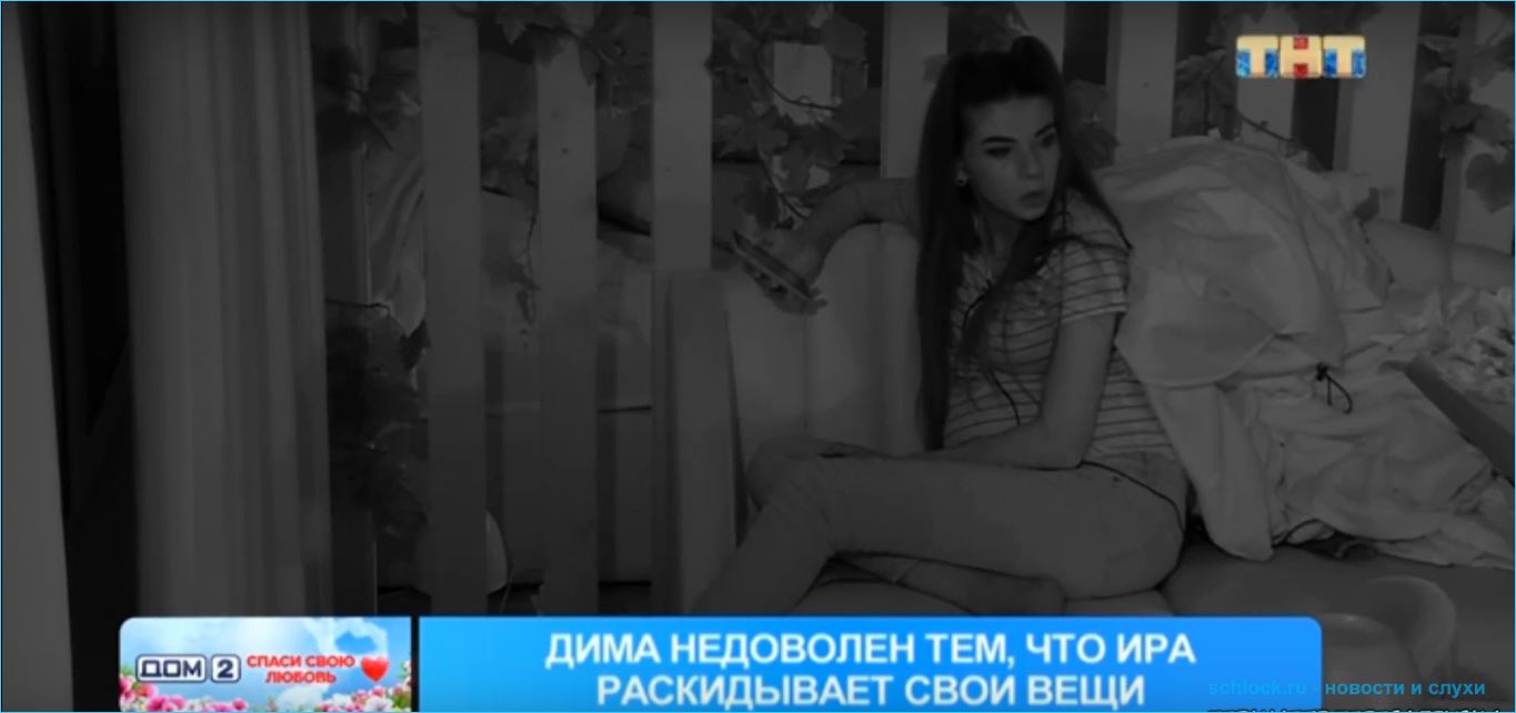 Повтор темы, ранее, когда Ира и Дима жили на Острове любви, Чайков упрекал беременную Пингвинову в том, что она не занимается стиркой. Дмитрий вырос в хорошей семье и не приветствует, когда женщина не следит за чистотой и порядком. Кстати, до потасовок доходило, когда Дима пытался воспитывать Иру. Чайкова раздражает нечистоплотность Пингвиновой, или она сама так быстро ему надоела?