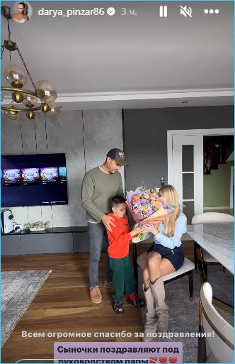 Зато появилась у Дарьи Пынзарь возможность показать, как её поздравляли сыновья под руководством папы Сергея, ведь теперь съемки может вести не только старший Артем, но и младший Давид, успехами которого так гордится его мама.