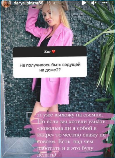 Успешно завершив переезд в новую квартиру, Дарья Пынзарь собирается вернуться на реалити-шоу Дом 2 в эфиры как ведущая. При этом она вынуждена признать в своем микроблоге, что прекрасно понимает, что её не слишком хорошо вопринимают в этом качестве зрители и часто критикуют за неумение найти выход из ситуации или достйно провести диалог.