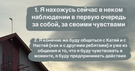 В дневном эфире Дома 2 18.07.2025 Луковкин не стал отрицать свою расположенность к Квашниковой, но в реальности он признаётся, что счастлив, и катается на самокате с Анастасией, хотя и ей до конца не может доверять, о чем мы рассказывали на шлоке.