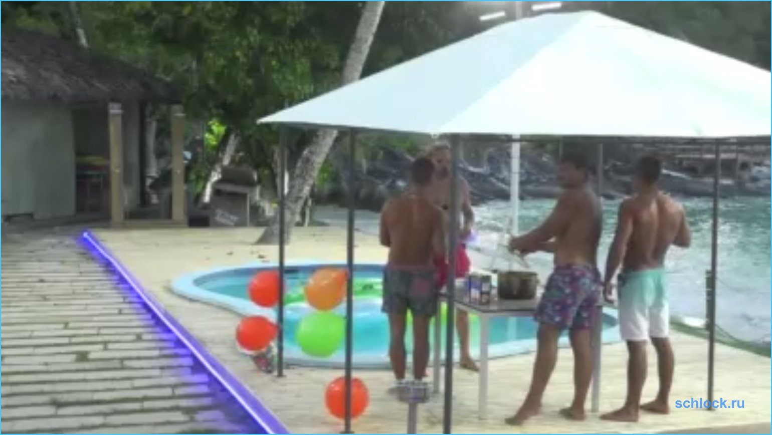 И пока девочки катались на банане, таблетках, на вилле у Жужи сжигали чучело, в котором были спрятаны записки, на которых они написали недостатки своих реальных и виртуальных мужчин, парни занимались домашним хозяйством.