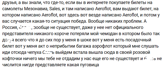 Скалон начала искать чемодан, обратилась в поддержку пассажиров Аэрофлота, а ей заявили, что брендовое название только на билете, купленном через интернет, на самом деле, её везла компания "Россия", с ними Кате и предложили разбираться.