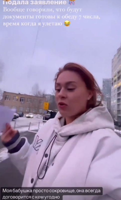Так как Горина собирается 7 марта улететь на Бали в компании братьев Прохоренко, о чем мы писали на шлоке, ей нужно было перед отъездом оформить документы, в том числе, договориться о новом паспорте. С этим вопросом ей тоже помогла разобраться родственница.