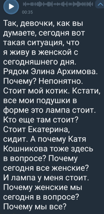 Источник фото: текст голосового помощника в Телеграме, перевод видеосообщения Тепловодской Е.