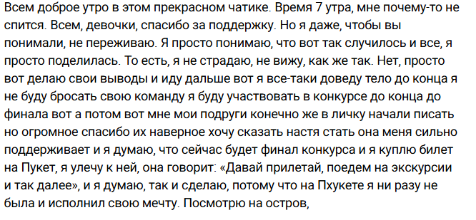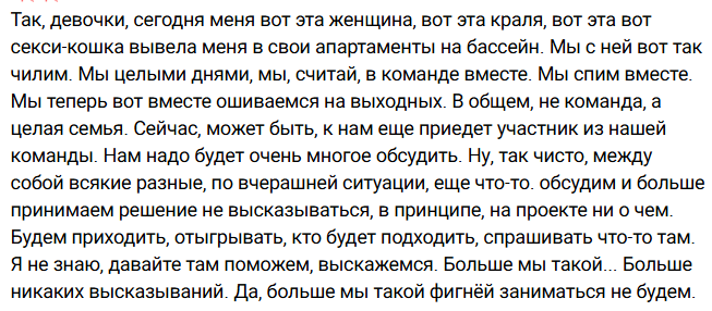 Зато появилась новая подруга, которая поддерживает Елену. Как бы не выяснилось потом, что у Тепловодской и Яббарова есть договоренности и они ведут свою игру. Сколько же людей будет разочаровано, когда они вновь помирятся?