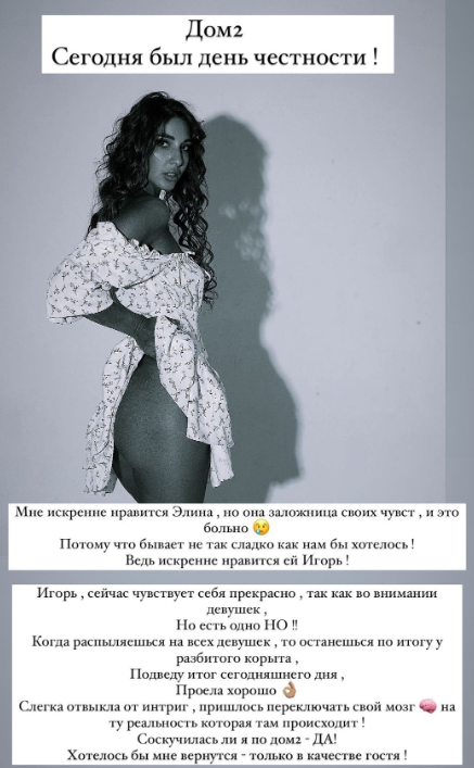 Не всё так плохо у богини телестройки, как кажется на первый взгляд. Это не парень от неё ушел к сопернице, это Элина не захотела бороться за Игоря Григорьева, зачем ей человек, который не умеет любить? Плюс - на слезах после расставания некоторые участницы проекта набирают приличную аудиторию, а это взлет в карьере блогера и деньги. Зрители Дома 2 поддержали Рахимову в этой истории, увидев отношение к ней Григорьева и его бабушки Натальи Ивановны. К тому же, Рахимова сможет рассчитывать на помощь Светланы Прель, которая поблагодарила свою аудиторию за адекватный взгляд на ситуацию.