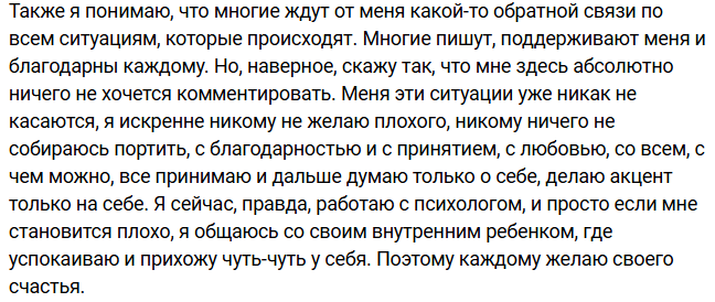 Многим телезрителям интересно, как Элина Рахимова отреагировала на появление в периметре новой девушки Никиты Гуранды. Элина записала для подписчиков несколько видеообращений в своём телеграм-канале и отметила, что не осуждает Никиту Гуранду или его новую девушку Дашу, желает всем счастья и ситуация эта её никак не касается. Более того, Рахимова по всем вопросам общается к психологу и держит себя в руках. Верим?