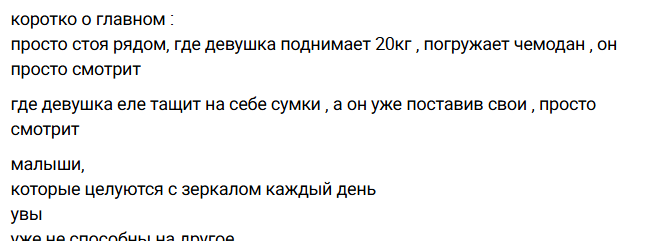 Разве Рахимова не знала, что любую помощь от Никиты будут расценивать как знаки внимания или желание помириться? Или он сам по себе такой, что не станет помогать девушке с чемоданами, чтобы лишние силы не тратить?