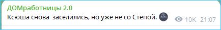 Кстати, судя по кадрам в эфирах, никакой не бытовой инвалид Ксюша, как утверждал Степа, она как раз в ип-доме у плиты чаще, чем Сидоров на общей кухне.