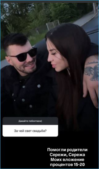 Несмотря на это, призналась Дорожкина, что в материальном плане с организацией свадьбы помогли родители Сергея Хорошева, она вложилась на 15-20%, а в плане организации пусть жених сам позаботится.