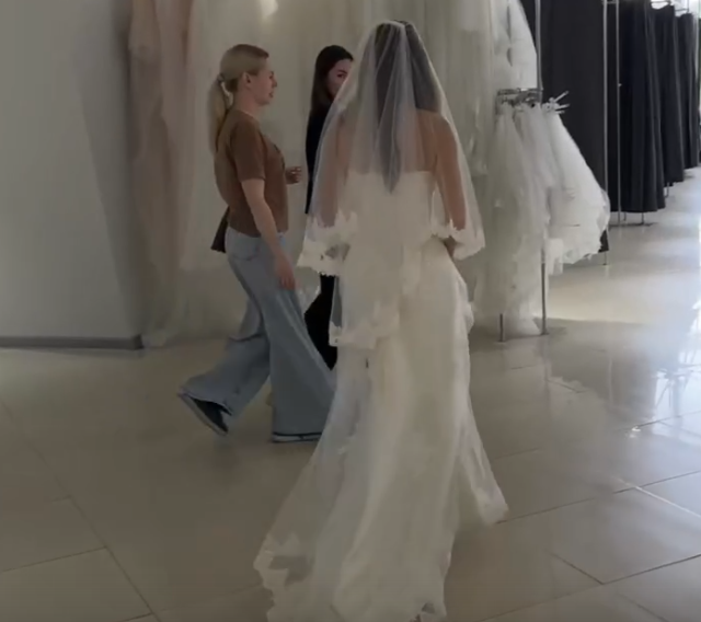 Мрачноватый какой-то образ или освещение в салоне платьев такое, но Женя призналась своим фолловерам, что её будущая свекровь растрогалась, вспоминая свою свадьбу.