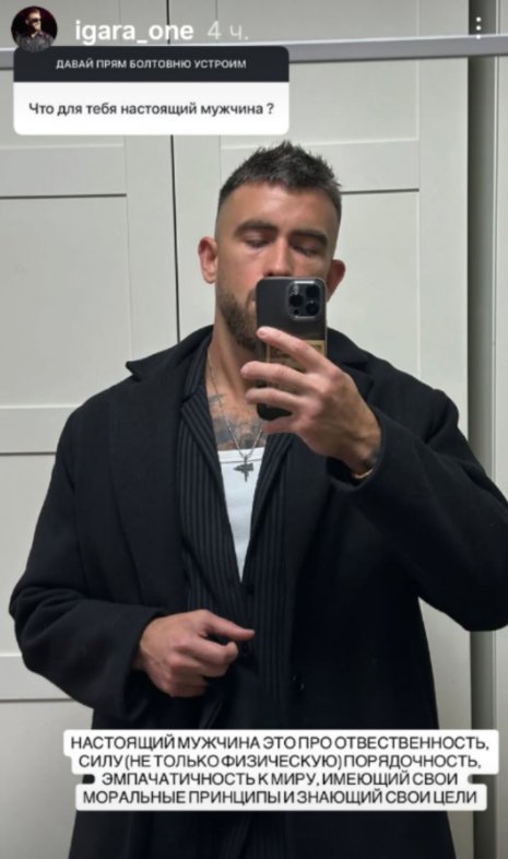 Хорошие представления у Игоря Григорьева о настоящих мужчинах, правильные. На кого это он в своих сторис намекает?