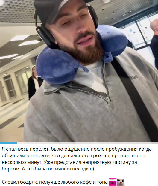 Григорьев уснул в самолете перед посадкой, проснулся от грохота и перепугался, в таком состоянии он и вышел из здания аэропорта, мигом записав кружочек видео для подписчиков.
