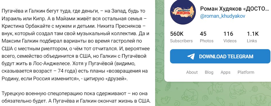 Роман Худяков уверен, совсем скоро семья Аллы Пугачёвой и Максима Галкина, внесённого в реестр иностранных агентов, отправится в США, где в настоящий момент проживает Кристина Орбакайте и её сын Никита.