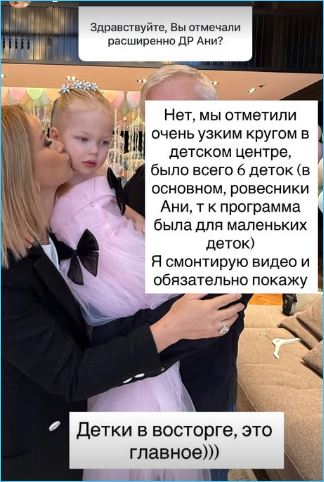Обещает Ольга Орлова своим подписчикам выложить видео ролик с дня рождения дочери, пока же ограничившись рассказом в микроблоге при ответах вопросы интересующихся.