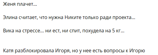 У Виктории Салибековой жизнь рушится. А Квашникова счастливая бегает по Поляне за Ильёй Яббаровым, о чем мы рассказывали на шлоке. К Игорю Квашникова вопросы накапливает, готовится к беседе по душам, как же без откровенных разговоров.