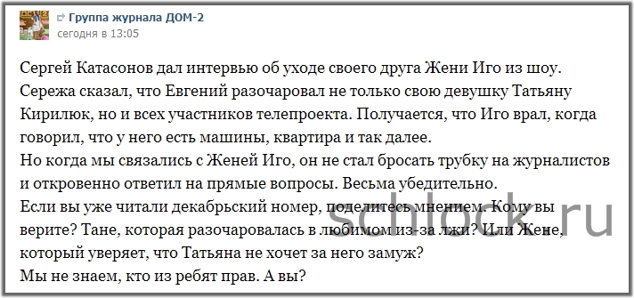 Кому же все-таки верить? Татьяне, которую обманул Иго или Жене, которого обманула Кирилюк? Как вы считаете?