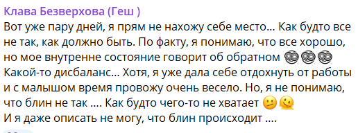 Клава сообщила подписчикам, что места себе найти не может, у неё тревожное состояние, из-за которого девушка прошла несколько онлайн-тестов и все они показали, что уровень тревоги высокий, вплоть до психического расстройства показывают результат тестирования онлайн-опросники.