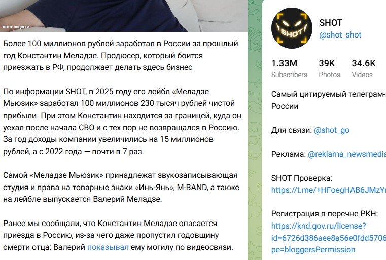 По информации телеграм-канала Shot, Константин Меладзе продолжает активно зарабатывать в России - в 2025 году его лейбл "Меладзе Мьюзик" принёс чистую прибыль в более чем 100 миллионов рублей. Услугами лейбла пользуется большое количество известных артистов, в том числе и родной брат Меладзе - Валерий. Прибыль от лейбла "Меладзе Мьюзик" продолжает расти, и это заметным образом беспокоит ряд общественных деятелей. Возвращаться в Россию продюсер не торопится, поэтому ведением им дел происходит на расстоянии.