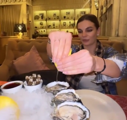 Свой дебют Кристина отметила поеданием устриц в компании редактора Дома 2 Яны Фиткевич, которая на протяжении трёх лет помогает подруге с карьерой на телевидении.