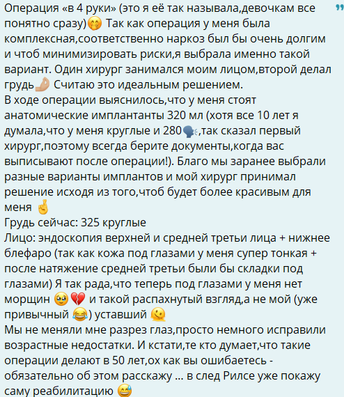 Кристина согласна с теми женщинами, которые пишут в комментариях, что у неё красивое лицо, но в 35 лет она почувствовала, что начинает стареть. Сначала экс-звезда Дома 2 заметила, что у её не такой гладкий лоб, как раньше, потом увидела нависшее веко. Зачем ждать до 50 лет, если проще исправить это сейчас?